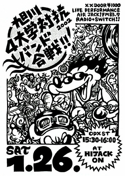 市内の4つの大学を集めたイベント。4匹のワンコが単車でバトル
