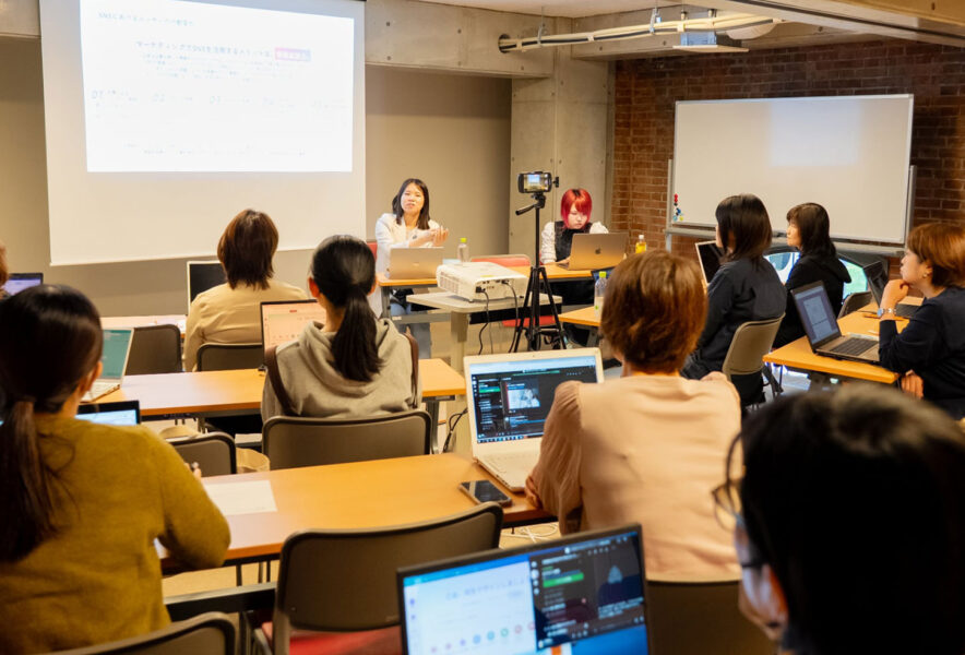 定員10名のところ12名が参加。代表の大田原が全5回の講師を務め、無料で使えるデザインツール「Canva」やAIを活用した実践的なコンテンツ制作スキルに加え、実際に案件を獲得し継続的な収入につなげるためのノウハウを提供した。
