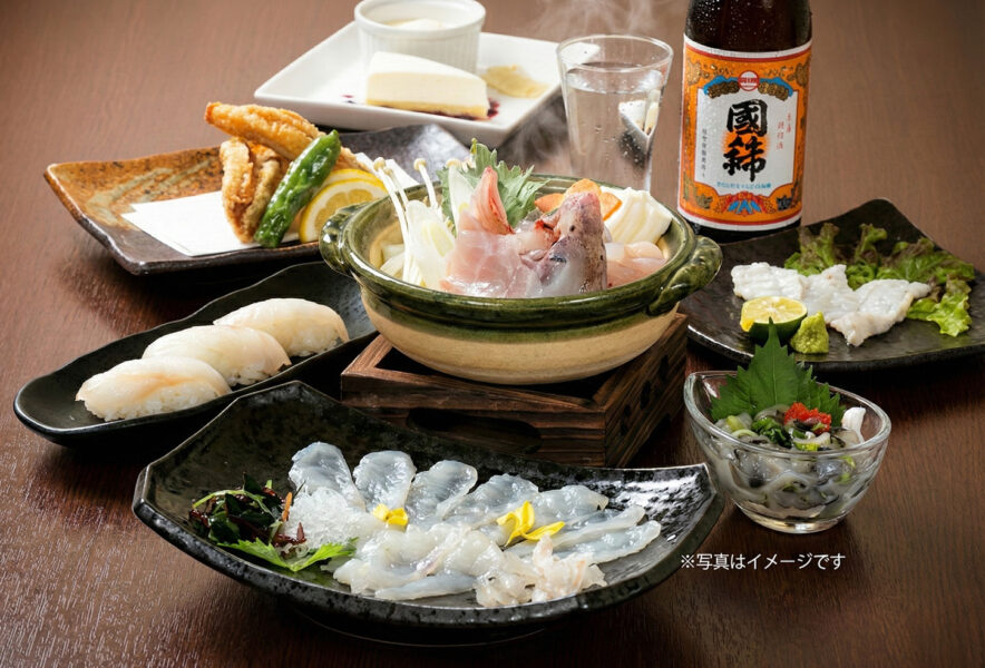 「ふぐ尽くしコース」(8,800円・税込)は、てっさやてっちりをはじめ、焼き・揚げ・寿司まで、ふぐの表情をさまざまな調理法で楽しめる内容。