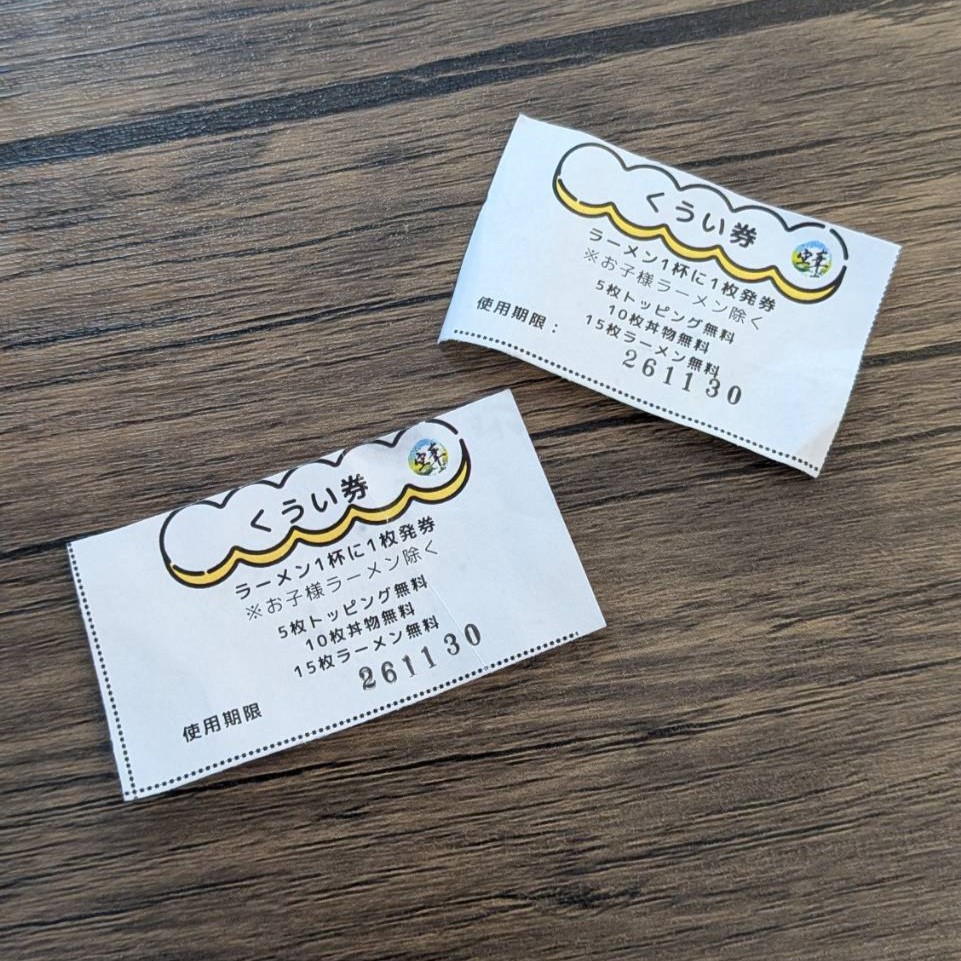 ラーメンを1杯注文するごとにもらえる「くうい券」は、