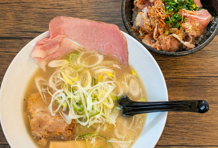 今回選んだのは「塩白湯ラーメン」と「ローストポーク丼」。これで合計1,180円(税込)。この価格で、ここまで満足度の高いセットはなかなか出会えない。