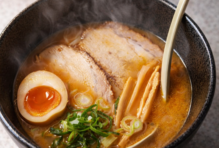 スープは今回「味噌」をチョイス。香り高くコク深いが、どこかほっとする優しさがあり、米粉麺との相性も絶妙だった。