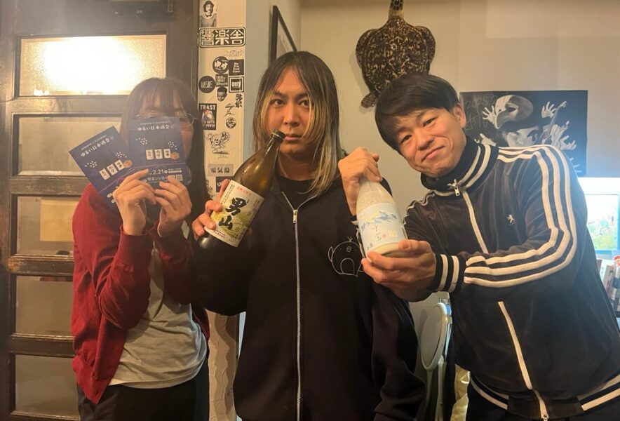 また、喫茶シンカイ店主の竹山キョんくんが日本酒好きで、新潟で構えていた前喫茶シンカイ時に、日本酒会を行っていたこともあり主催者と意気投合。喫茶シンカイの場所を提供していただき、持ち込みで飲み合う会が実現しました。